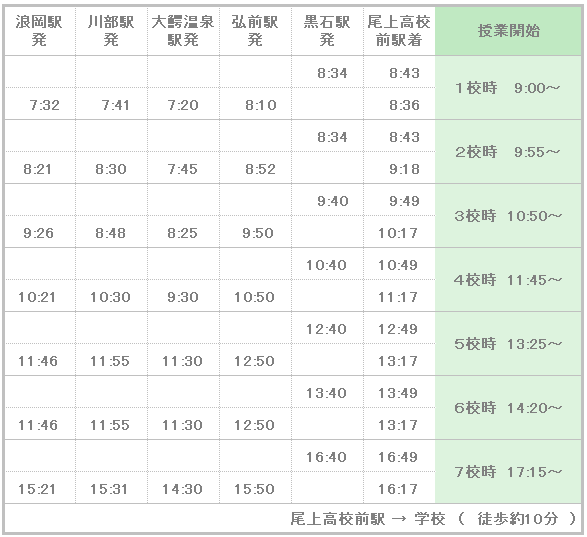 学校までの交通機関 青森県立尾上総合高等学校
